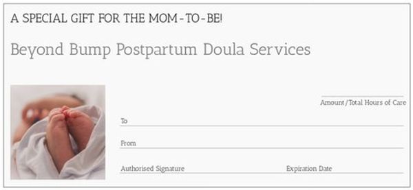 2 hours of certified postpartum doula care. This gift is unique because it is just for her! You are ensuring she is getting the informational, emotional and physical support she needs (in her own home or virtually!) during her postpartum period.